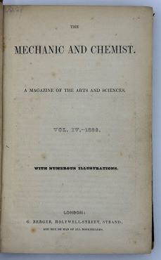 BERGER, G [PUBLISHER].: The Mechanic and Chemist. A Magazine of Arts and Sciences. Vol IV. -1839. With numerous illustrations.