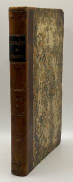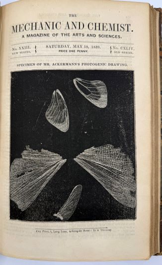 Volume 4 only, comprising issues New Series I -XLIX, Jan -Sept 1839]], 8vo, pp iv, 392, [6, index], wood-engravings in text, bound in contemporary half calf, spine gilt ruled with black label, binding rubbed but sound, occasional spotting or soiling internally but quite sound and tight, a good copy,FIRST EDITION. With volume four of this periodical a new series was commenced of 'The Penny Mechanic and Chemist' with the word 'Penny' dropped for the name. It remained, however, a notable penny weekly for the artisan with scientific interests such as were being cultivated widely in Mechanic Institutions throughout the country. In one respect at least, the year of this volume, 1839, was notable in the scientific community: the possibilities of photography through various chemical processes developed by Daguerre and Fox Talbot were being widely discussed, with much attention given in the 48 weekly issues of 'The Mechanic and Chemist.' In the January 19th issue appears the headline ' 'Extraordinary Chemical and Optical Discovery'...M Daguerre has succeeded in fixing upon paper...the rays that are directed on the table of the camera obscura...an exact representation , in light and shade, of whatever object may be wished to be viewed...' and on February 9th a further article expands on the first '...In these pictures may be perceived even the time of day...' An account of Fox Talbot's memoir to the Royal Society appeared later that month, while Talbot's claim of priority is discussed in an article of March 3rd. Daguerre's actual chemical process is laid on on March 9th, whilst issues of priority continued to rage both sides of the English Channel. The most considerable article, entitled 'Photogeny. Discovery of MM Niepce and Daguerre' spanning over 6 columns, appeared on August 31st, whilst wood-engraved illustrations of 'Photogenic Printing' and 'Pictures formed by the Action of Light' had appeared in previous months. Together these, as well some other articles, suggest the excitement generated in 1839 by the prospect of permanent photographs. Gernsheim, in his ‘Incunabula of British Photographic Literature' includes other periodical of that year, but not this one which has beendismissed all too readily by later scholars as a cheap penny periodical for the masses. In reality, its articles are both series and detailed, suggesting a very cultivated, if likely not rich, audience. £150.00