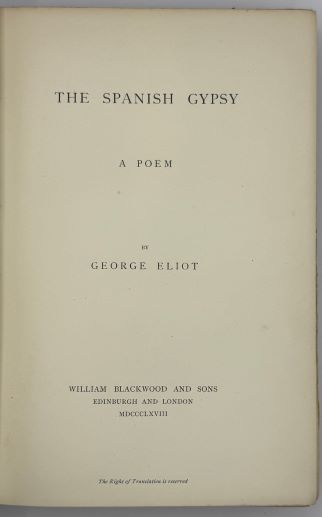 ELIOT, GEORGE. [MARION EVANS].: The Spanish Gypsy. A Poem.