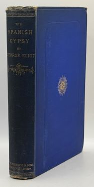 8vo, pp [6], 358, [8, adverts], untrimmed in original blue cloth with central gilt device to upper board, spine gilt, drab grey endpapers, a little rubbed at joints and worn at spine ends, very slight fading to spine as usual, minor binding faults only, a very good sound copy, FIRST EDITION, Eliot's excursion in epic poetry was well-received in her own day, one critic even calling it the best epic ever written by a woman. After initial enthusiasm it passed from favour somewhat, eclipsed by her more significant contributions to the English novel. 'The Spanish Gypsy' remains, however, a significant contribution to Victorian poetry by one of the major female literary figures of the time and hard to find in anything approaching good original cloth, with the adverts intact; this copy shows usual browning to the adverts due to paper quality and some wear to the binding but is really quite bright. £150.00